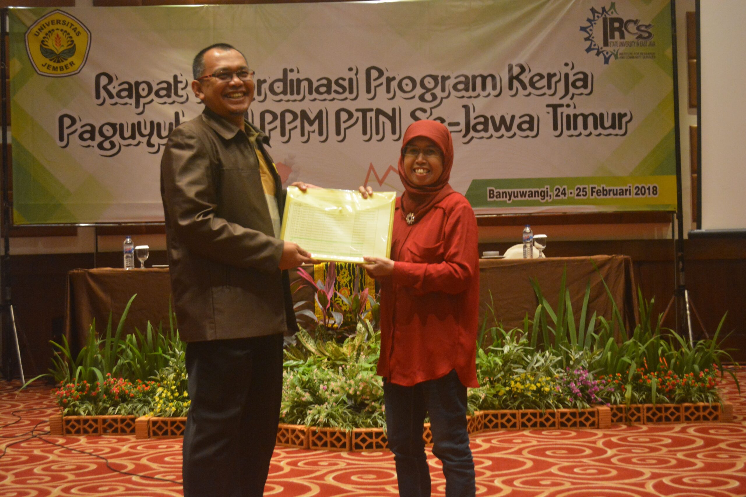 Universitas Jember (UNEJ) diamanahi menjadi tuan rumah rapat kerja Paguyuban LPPM Perguruan Tinggi Negeri (PTN) Se-Jawa Timur. Selain membahas program kerja yang akan dilaksanakan ke depan, forum ini juga sebagai ajang silaturrahim antar sesama kampus negeri.